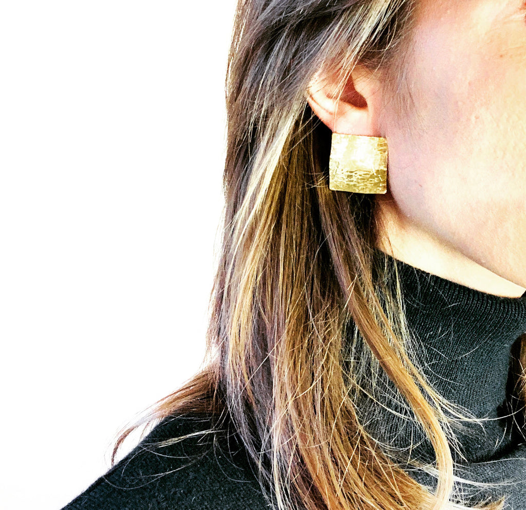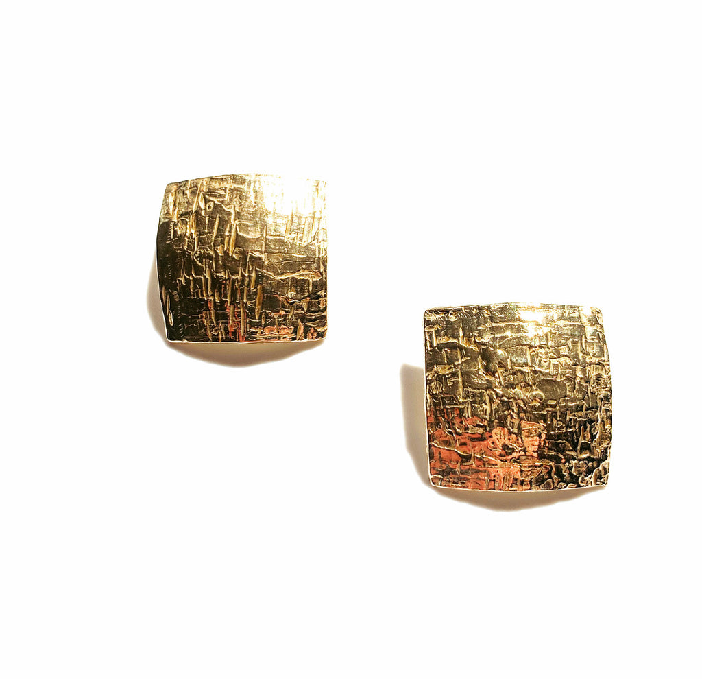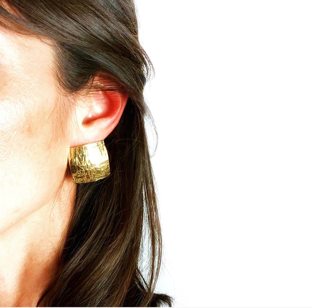 Orecchini scudo cerchio in argento 925, realizzati mediante l'antica tecnica della cera persa e con finitura galvanica in materiali preziosi.