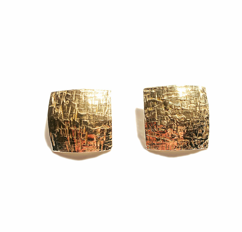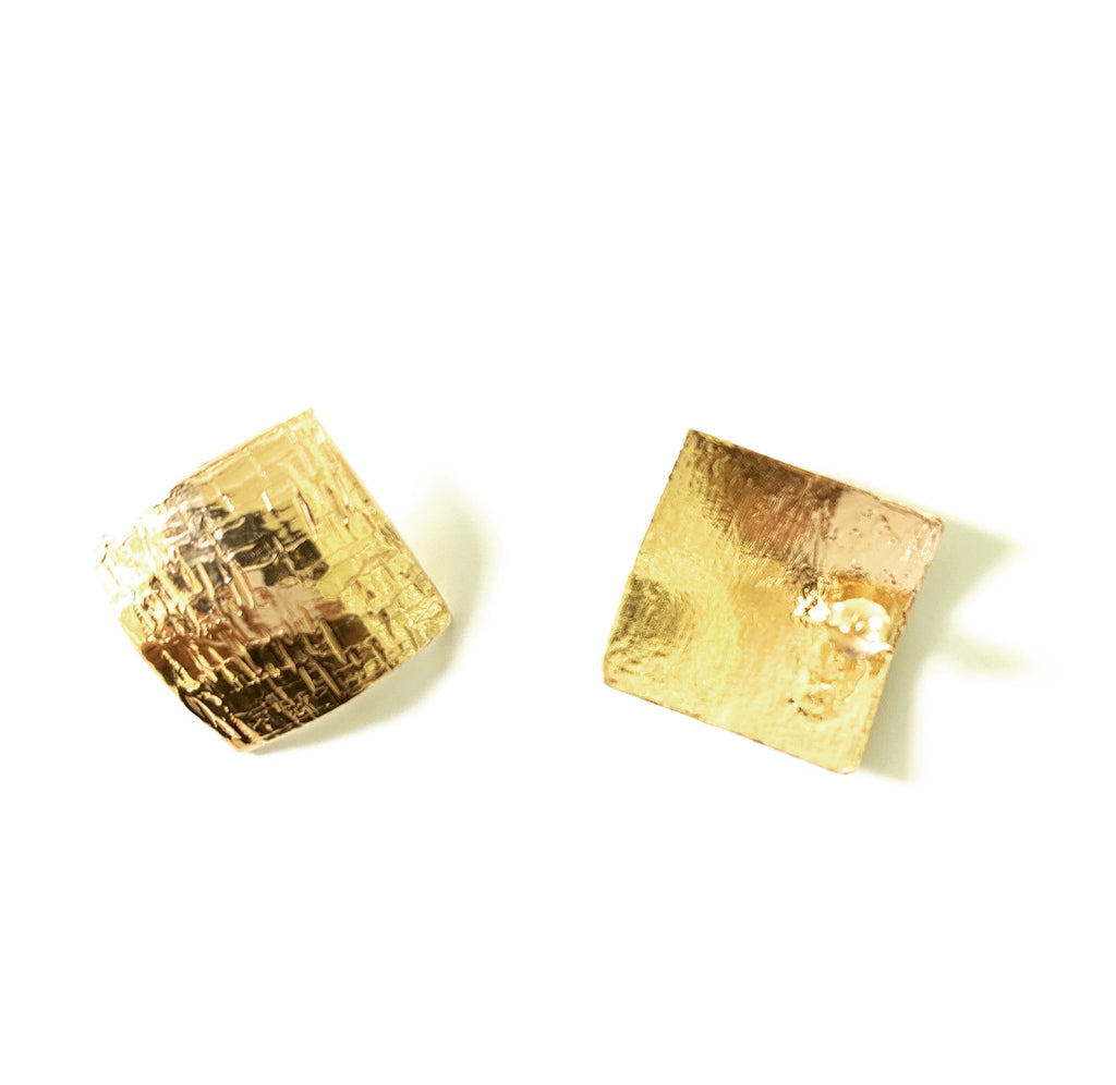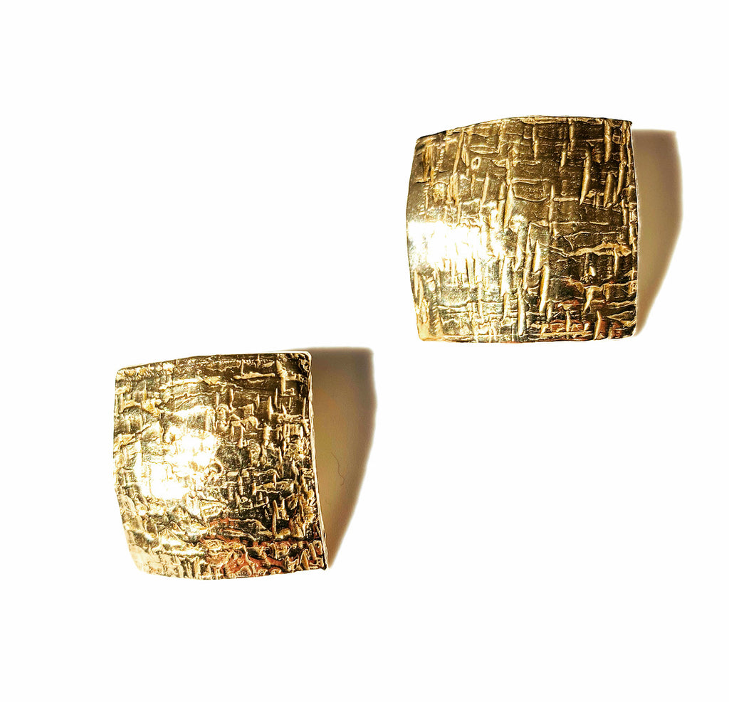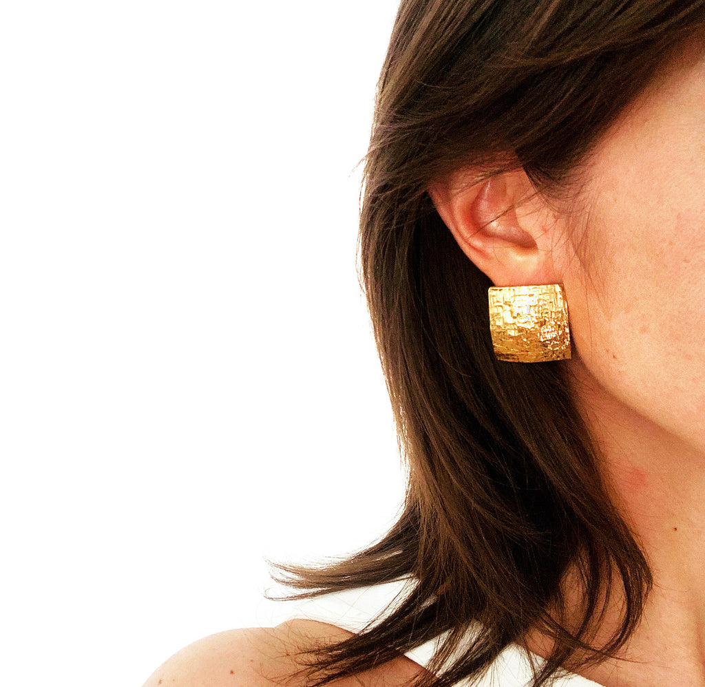 Orecchini scudo cerchio in argento 925, realizzati mediante l'antica tecnica della cera persa e con finitura galvanica in materiali preziosi.