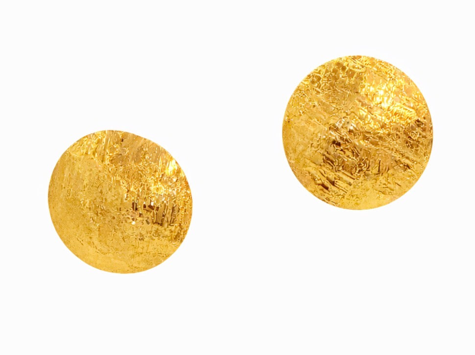 Gli orecchini Scudo Grande sono caratterizzati da cerchi bombati con texture come roccia levigata dal scorrere dell’acqua che riflettono la luce in modo dinamico e valorizzano la purezza della forma. Il design unisce eleganza contemporanea e lavorazione artigianale, esprimendo la forza e l’autenticità della materia.